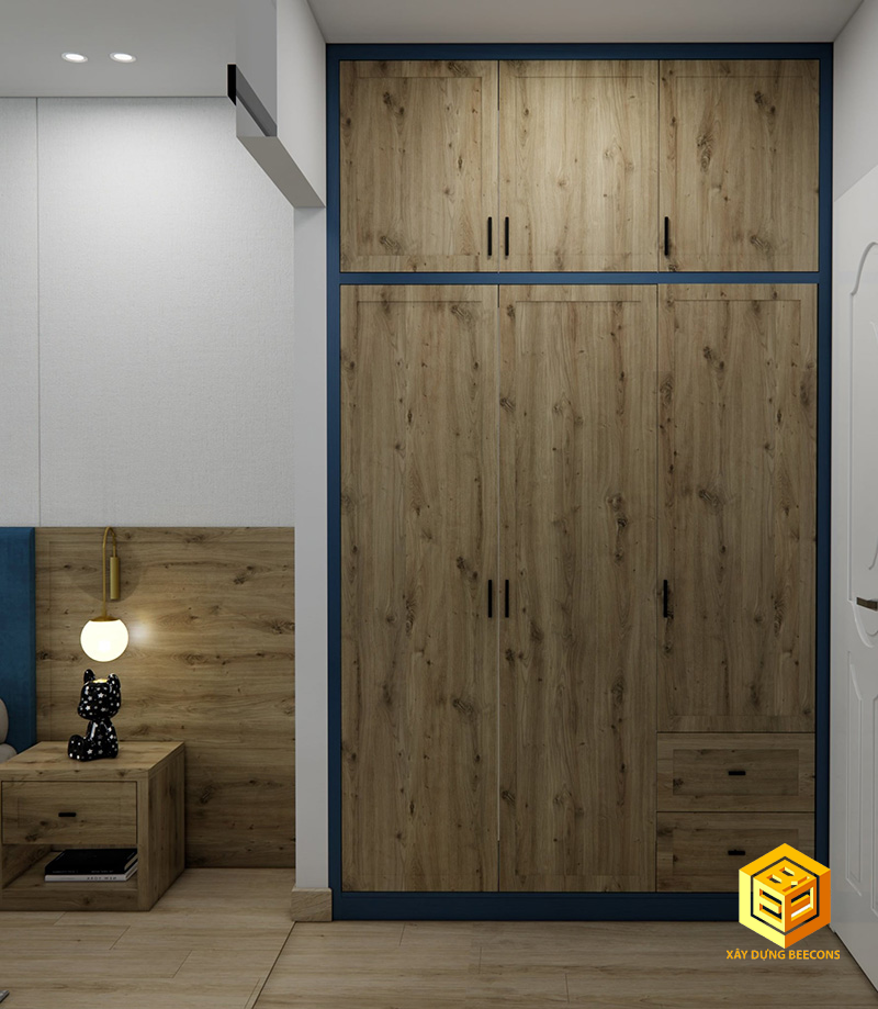Tủ áo quần bố trí âm tường cao, rộng đầy đủ các ngăn ,tiện dụng cho quá trình lưu trữ.