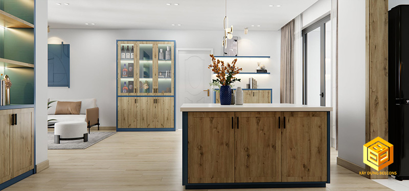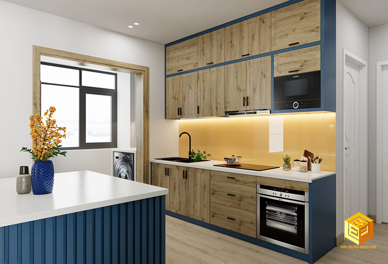 Tủ bếp cũng được thiết kế cùng tone màu với thiết kế của căn nhà