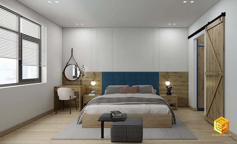 Không gian nghỉ ngơi được bố trí khoa học cùng bảng màu trung tính mang đến sự tươi mới, mát mẻ cho cả căn phòng.