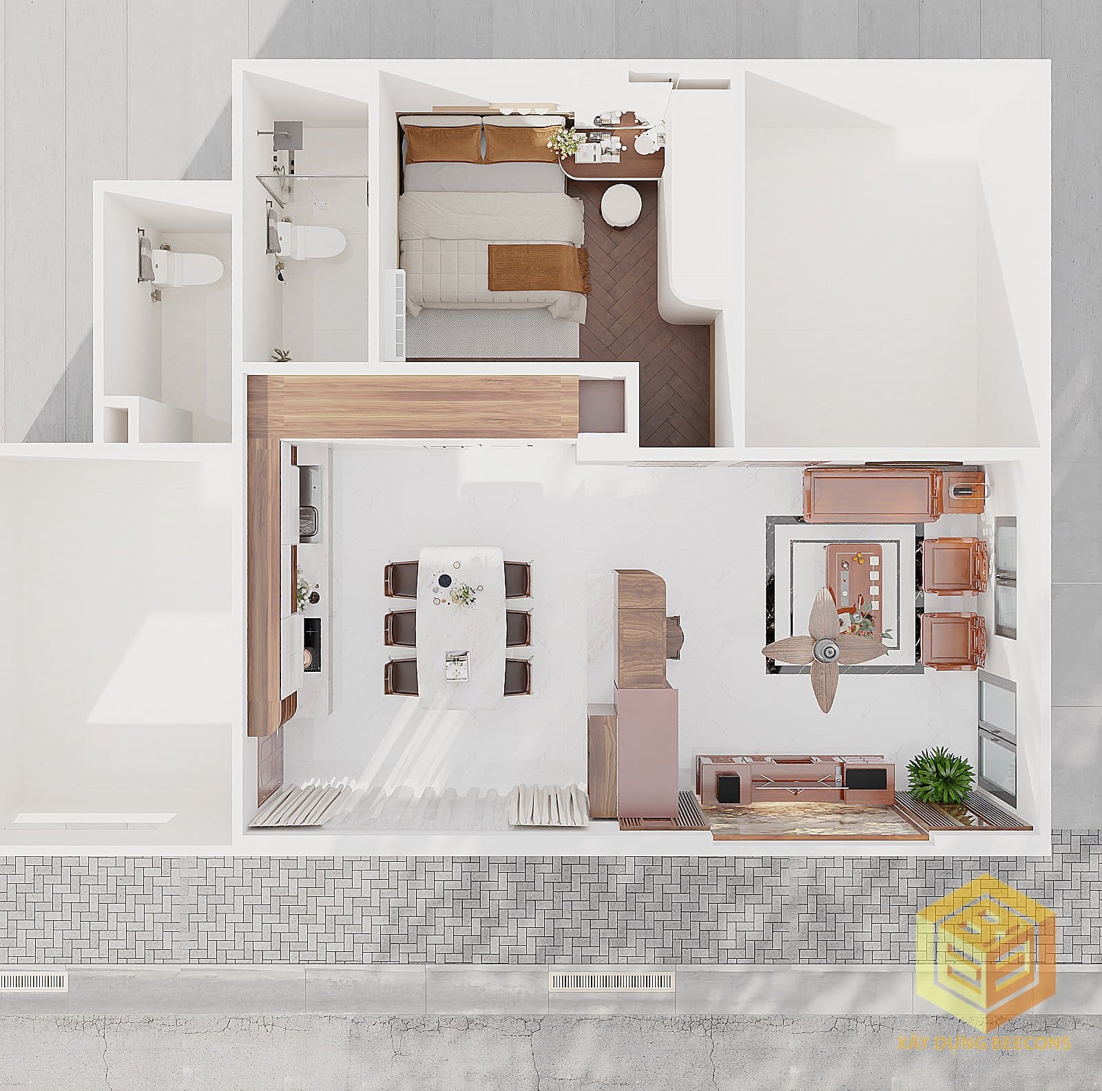 – Quy mô: 1 khách, 1 bếp, 3PN