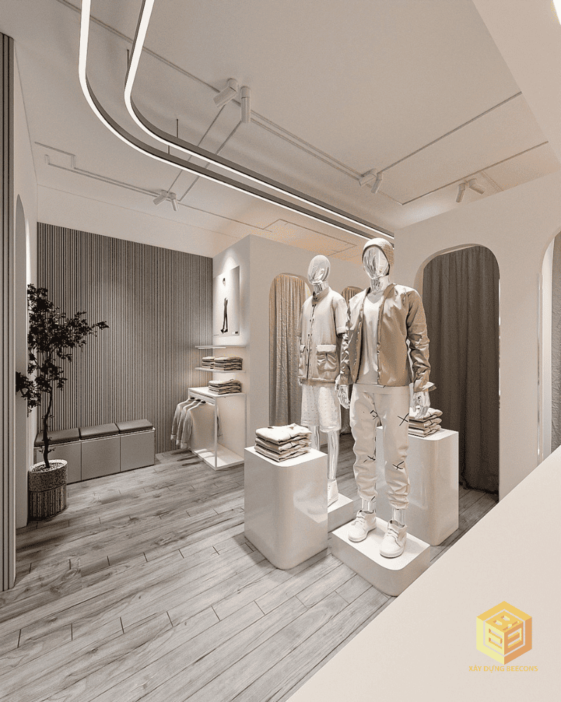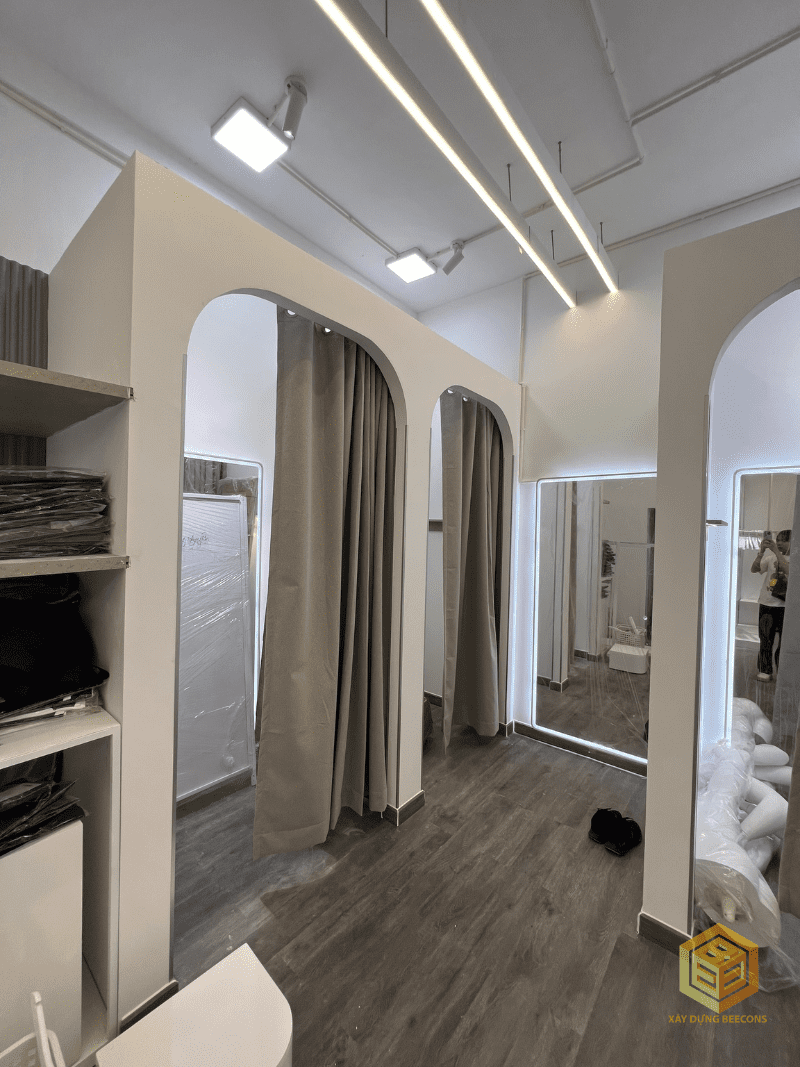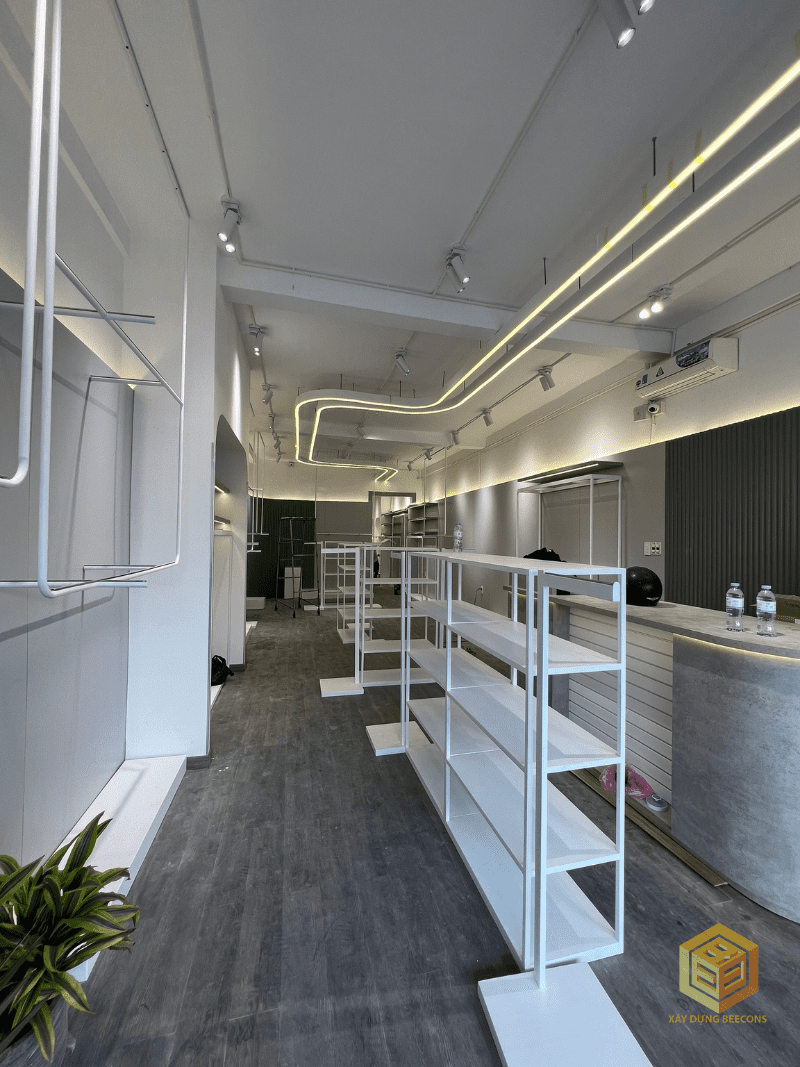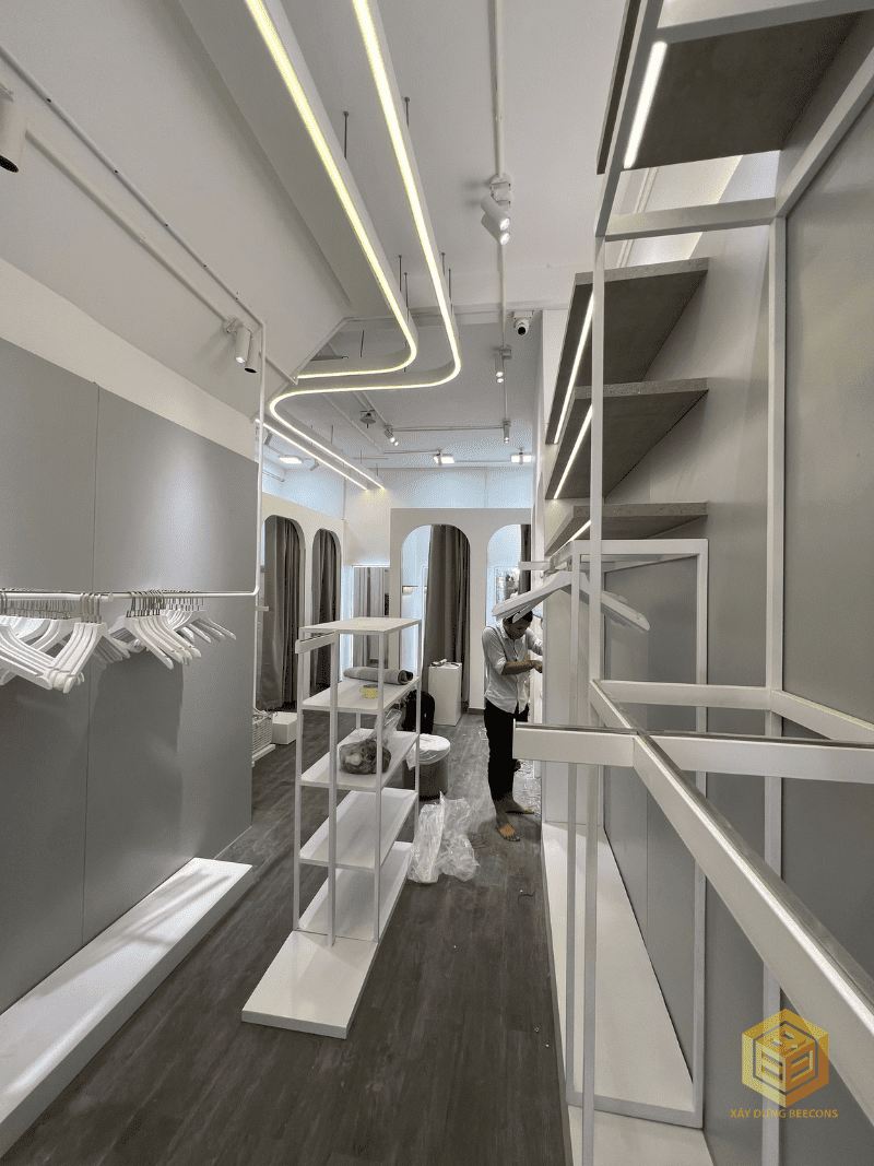 - Phần nội thất: Thi công nội thất Kệ, quầy tính tiền, tủ locker, bục Manacanh display, phòng thử đồ, vách ốp tường trang trí…