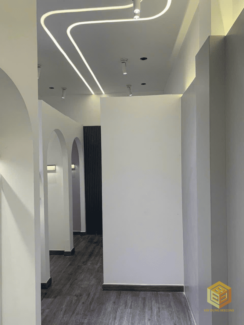 - Phần thô: Tháo dỡ, đóng trần thạch cao mới + vách ngăn thạch cao 2 mặt, bã bột sơn trần + tường vách, thi công hệ thống đèn điện, thi công lót sàn thi công bảng hiệu và cửa kính mặt tiền.