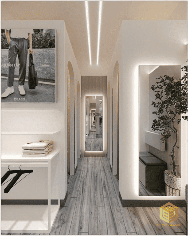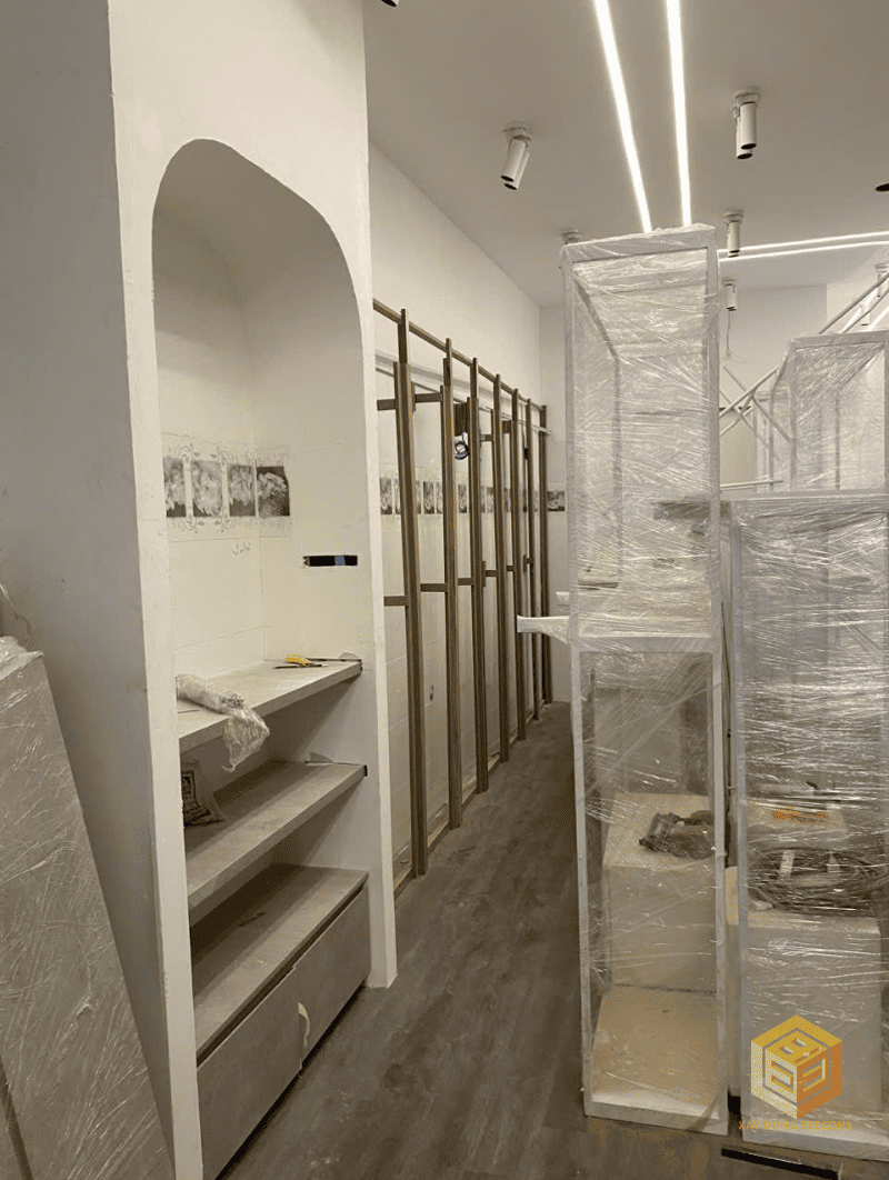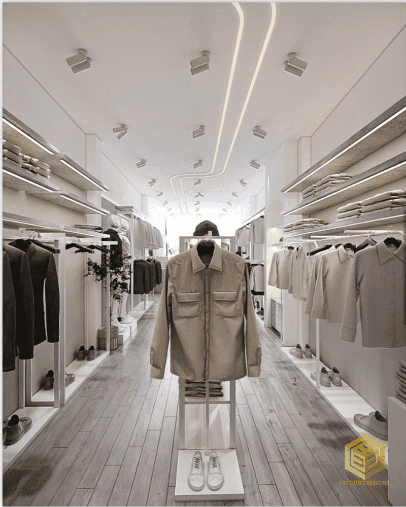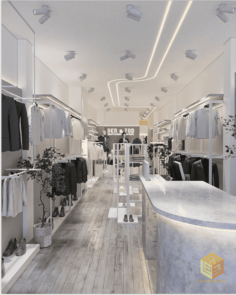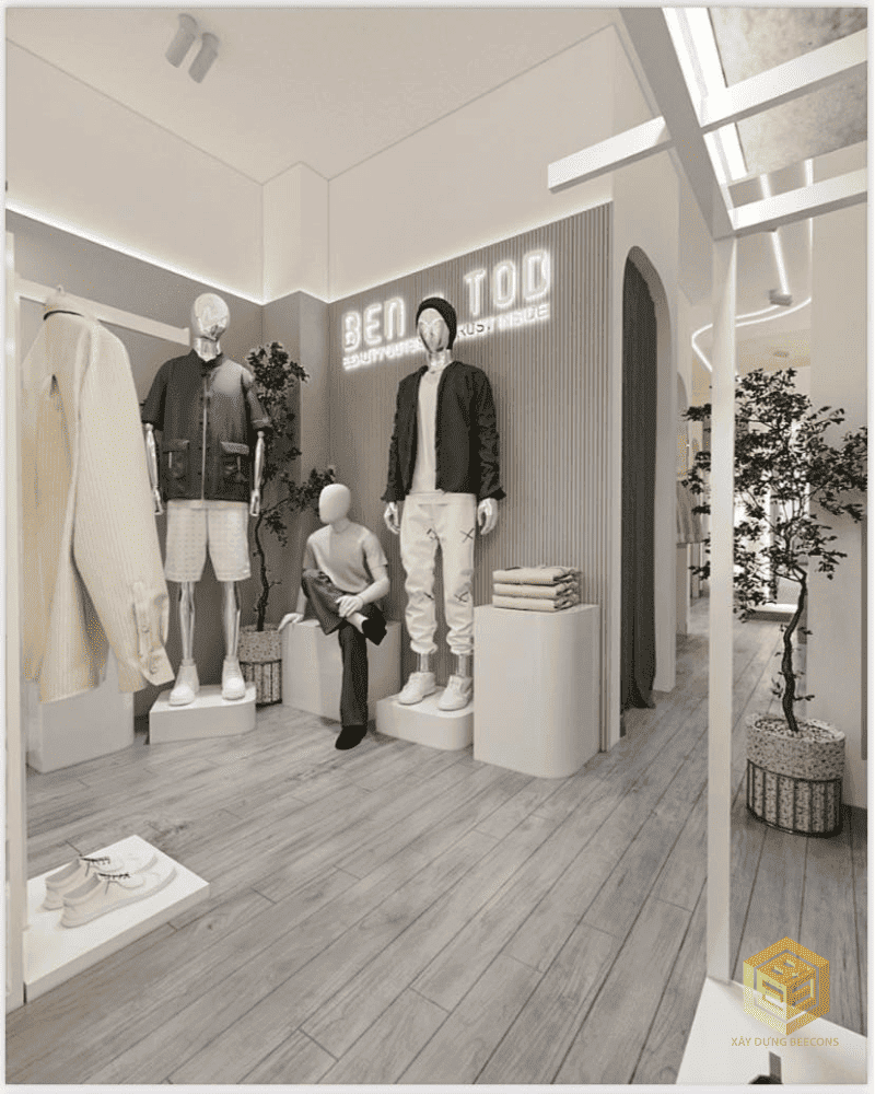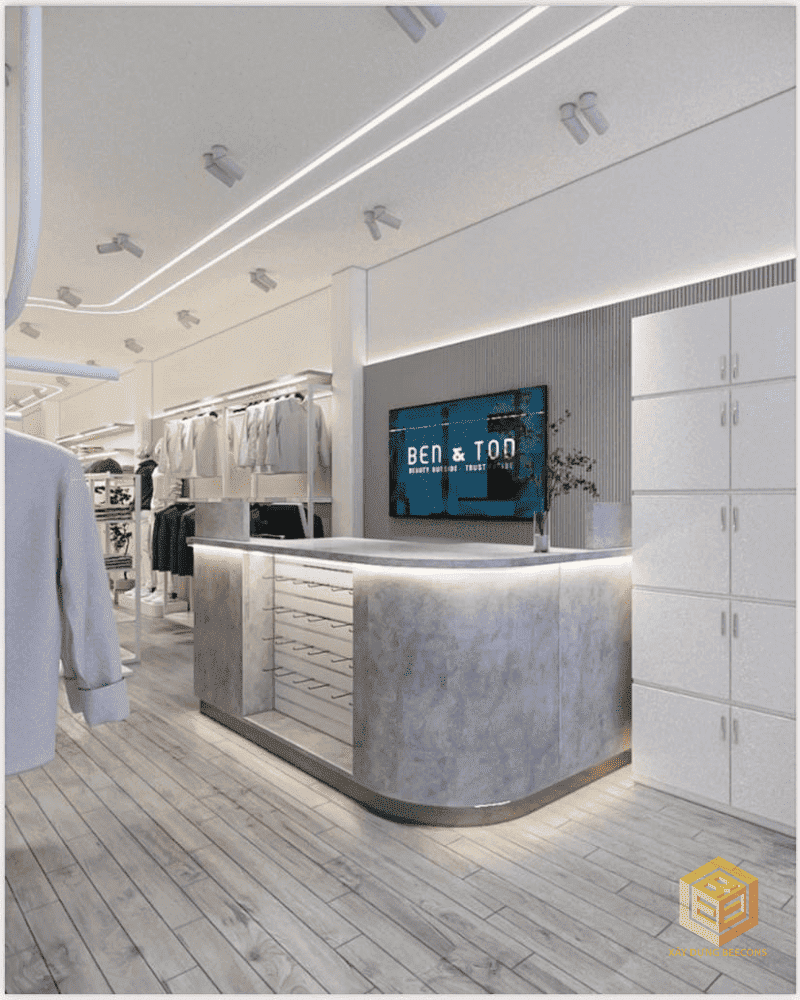 - Phần nội thất: Thi công nội thất Kệ, quầy tính tiền, tủ locker, bục Manacanh display, phòng thử đồ, vách ốp tường trang trí…