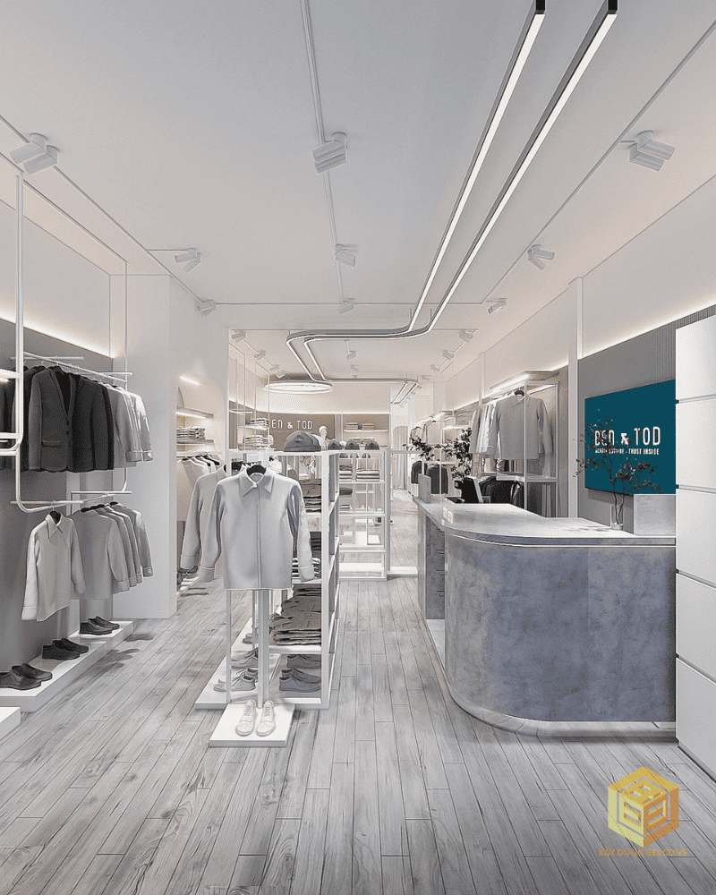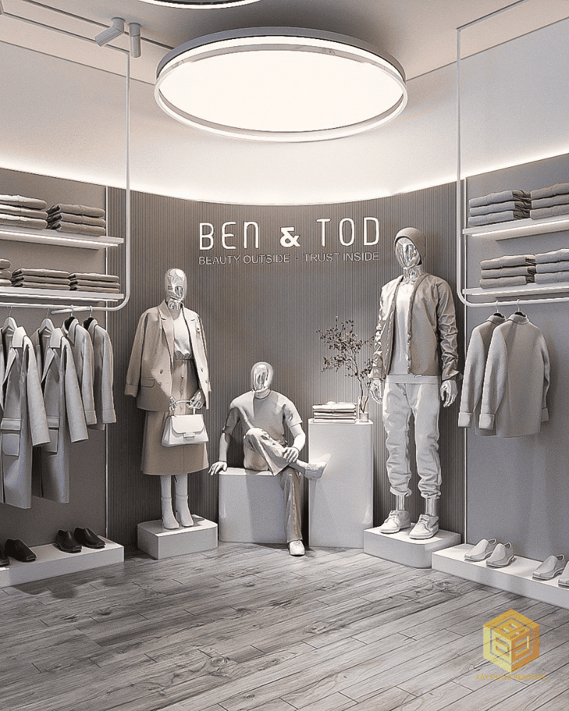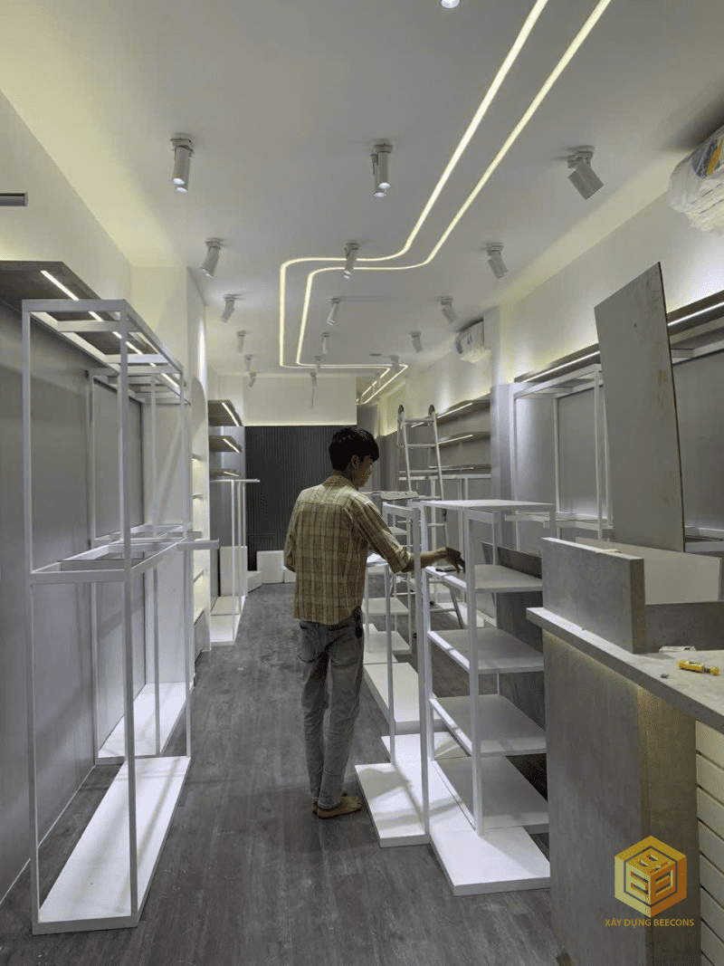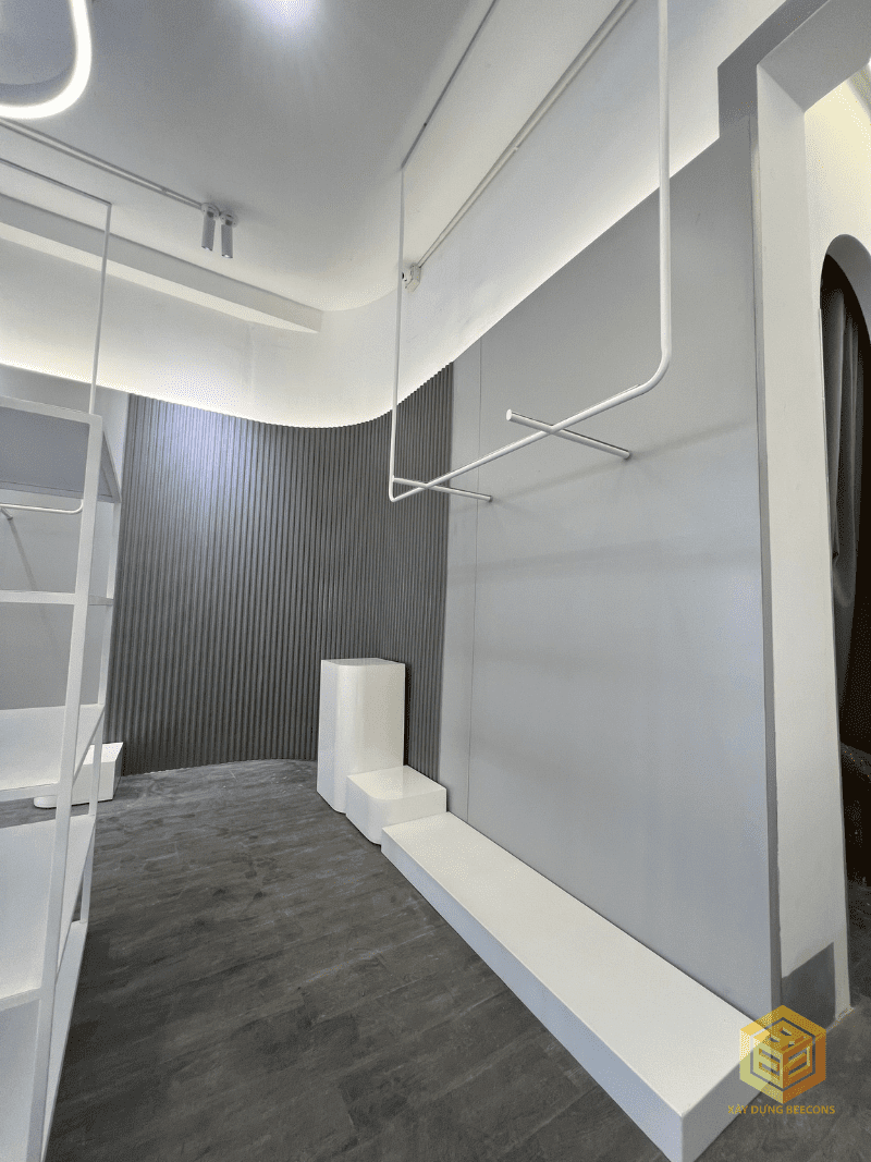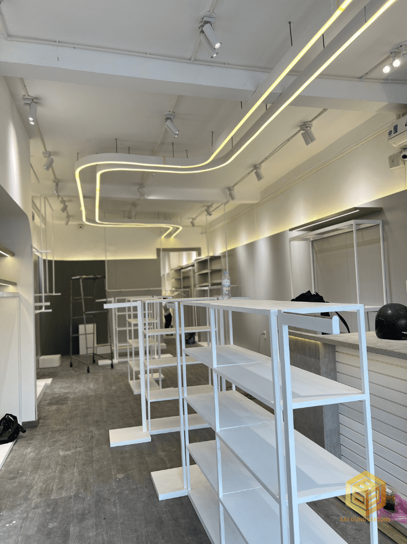 - Phần nội thất: Thi công nội thất Kệ, quầy tính tiền, tủ locker, bục Manacanh display, phòng thử đồ, vách ốp tường trang trí…