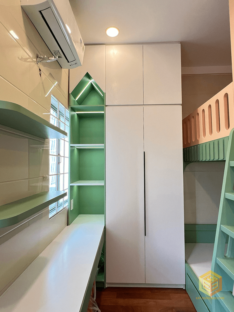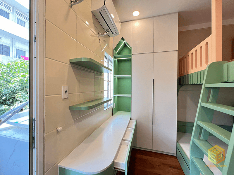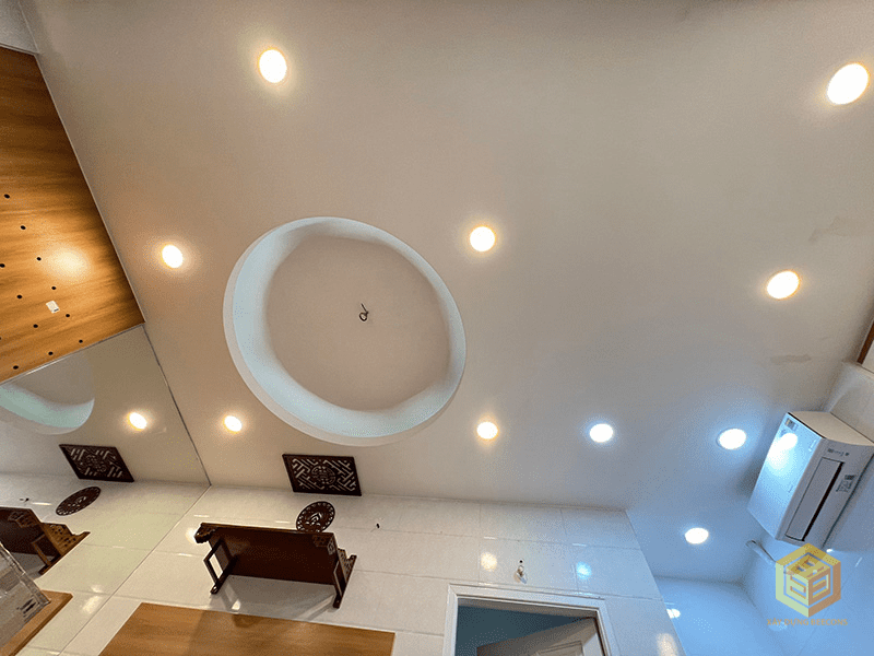 Hạng mục thi công: Thiết kế thi công nội thất trọn gói. Tháo dỡ thi công trần thạch cao, sơn nước trần tường, thay mới hệ thống đèn điện, thay gạch toilet, lắp trang thiết bị WC mới
