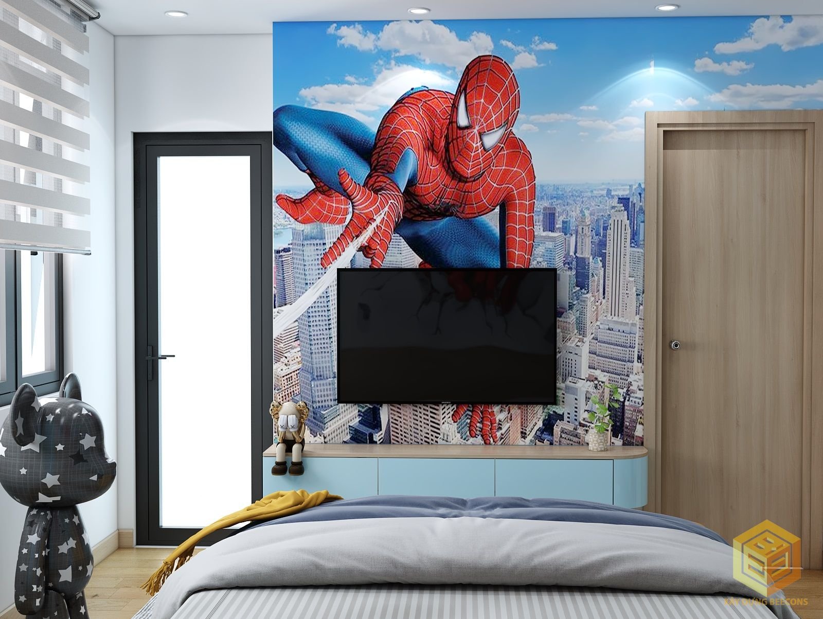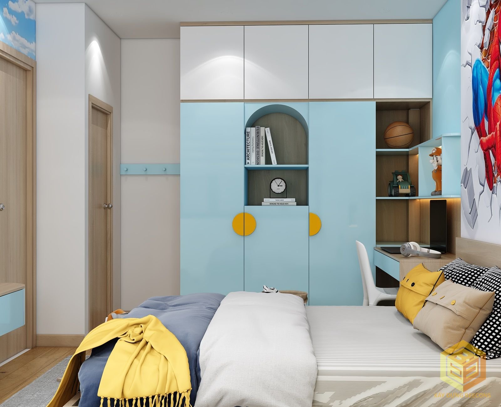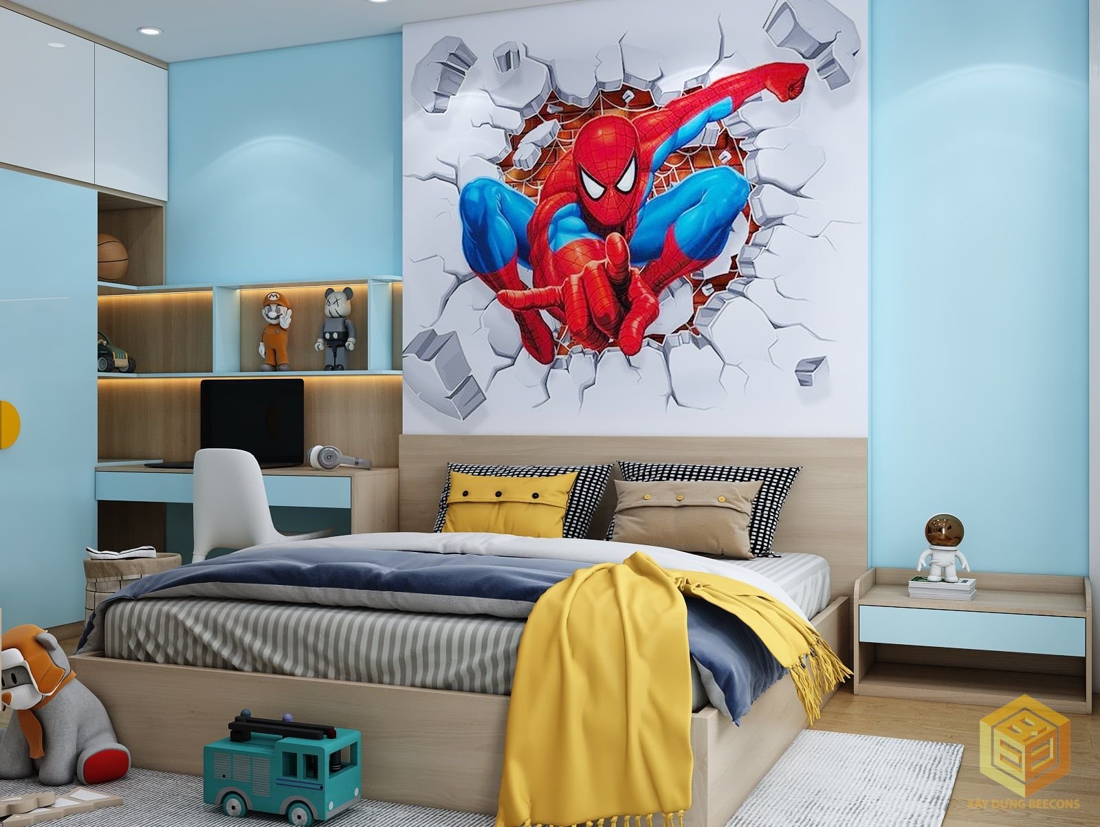 Dercor phòng bếp – phòng ngủ ba mẹ – phòng cho bé thích siêu nhân.