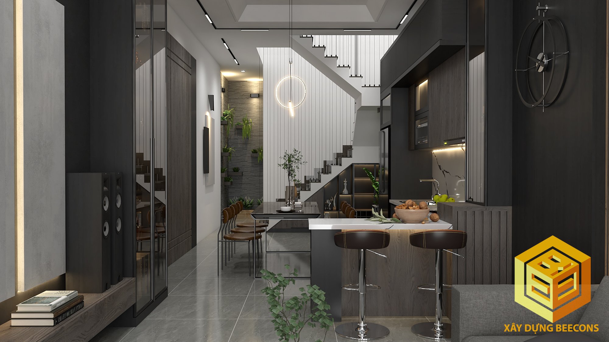 Căn nhà anh Đào được thiết kế theo phong cách hiện đại, với sự kết hợp giữa 2 tông màu trắng đen tương phản sẽ mang lại cho bạn không gian sang trọng, nhã nhặn, lại hiện đại, giàu tính thẩm mỹ phù hợp với xu thế hiện nay. Màu đen thể hiện sự mạnh mẽ cũng như truyền tải sự tinh tế và bí ẩn trong thiết kế nội thất nhà ở. Còn màu trắng thể hiện sự tinh khôi và tính giản dị.