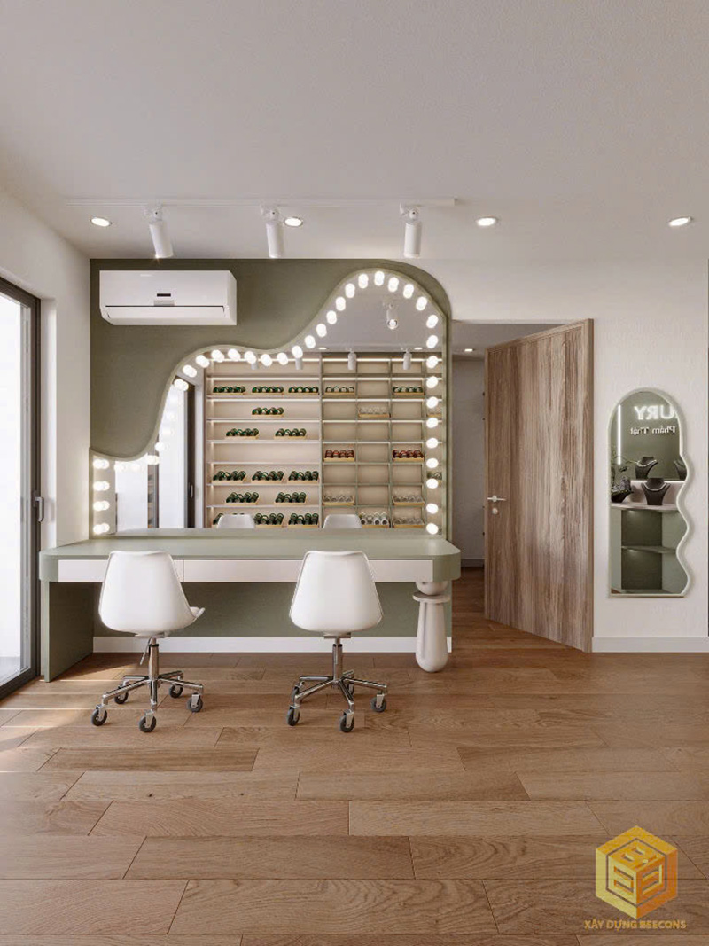 - Khu vực livestream: Bàn trang điểm với gương đèn LED, giúp tối ưu ánh sáng và tạo điểm nhấn sang trọng.